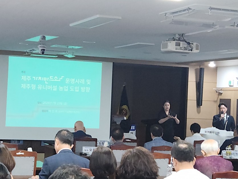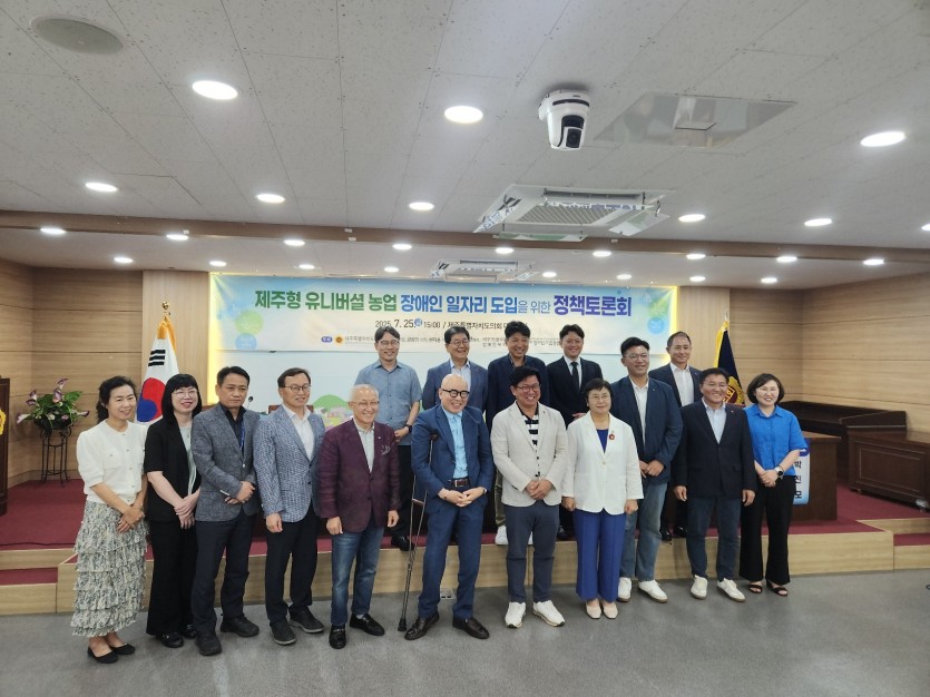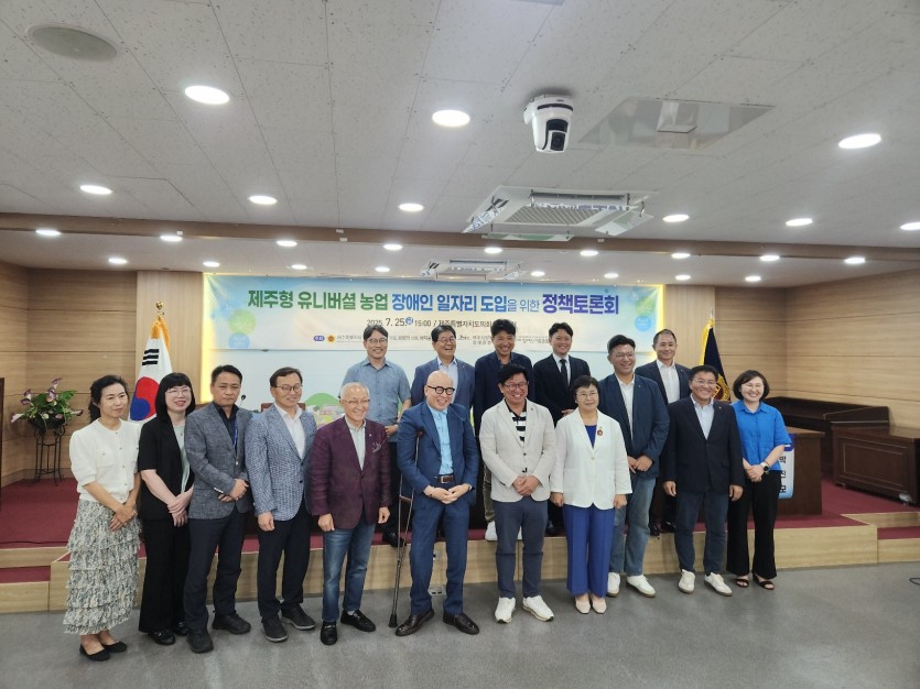 제주형 유니버셜 농업 장애인일자리 도입을 위한 정책토론회 를 제주도의회 대회의실에서 진행되었습니다.